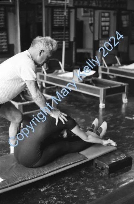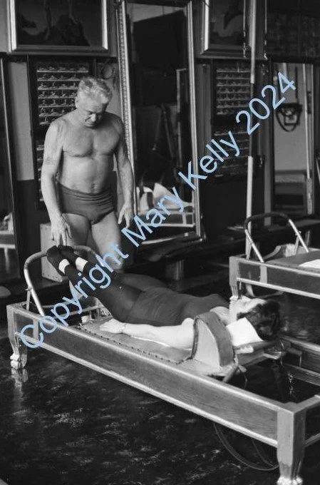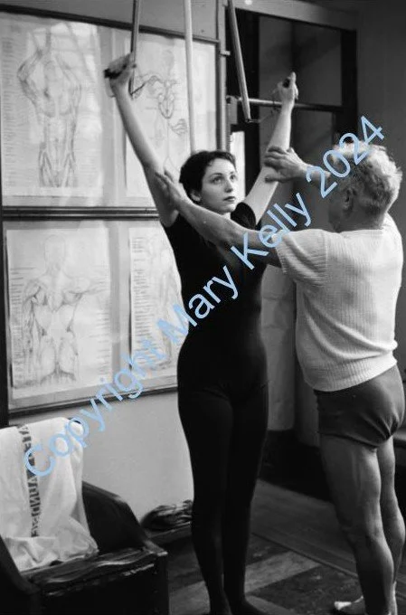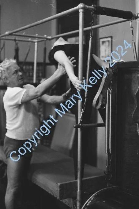 Original photographs taken by Herb Flatow in 1955 at Pilates’ original studio at 939 Eighth Avenue, New York. Discovered in 2024, the photos are copyrighted by Mary Kelly with all profits to the Pilates Transparency Project.